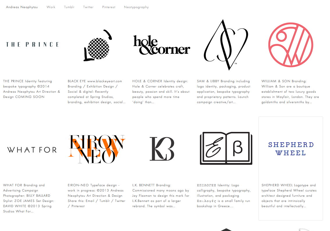 - Andreas Neophytou: Logos, tipos e infografía. Londres. New York. Ojo con Black Eye, TFL y Venus Wine and Spirit Merchants.
